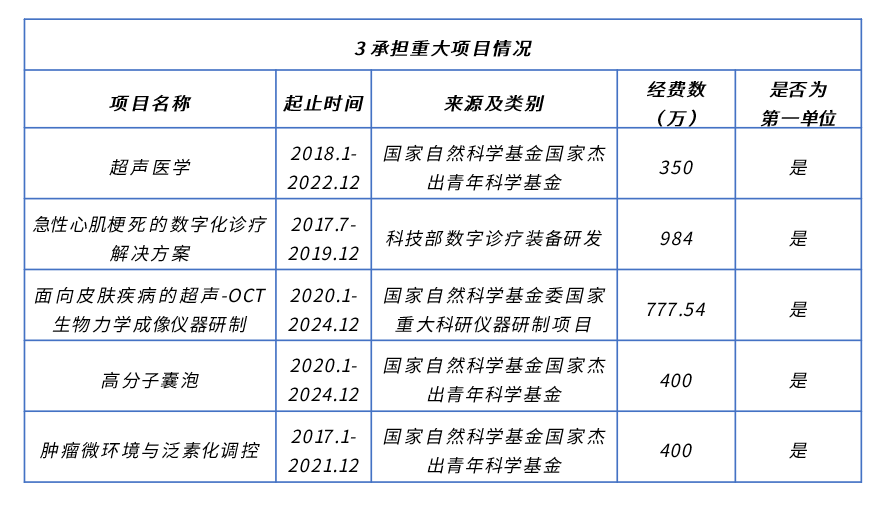 主持国自然重大科研仪器研制项目、国家杰出青年基金等项目多项。获上海市科技进步一等奖、高等学校科技成果二等奖、中华医学科技二等奖等奖项多项。